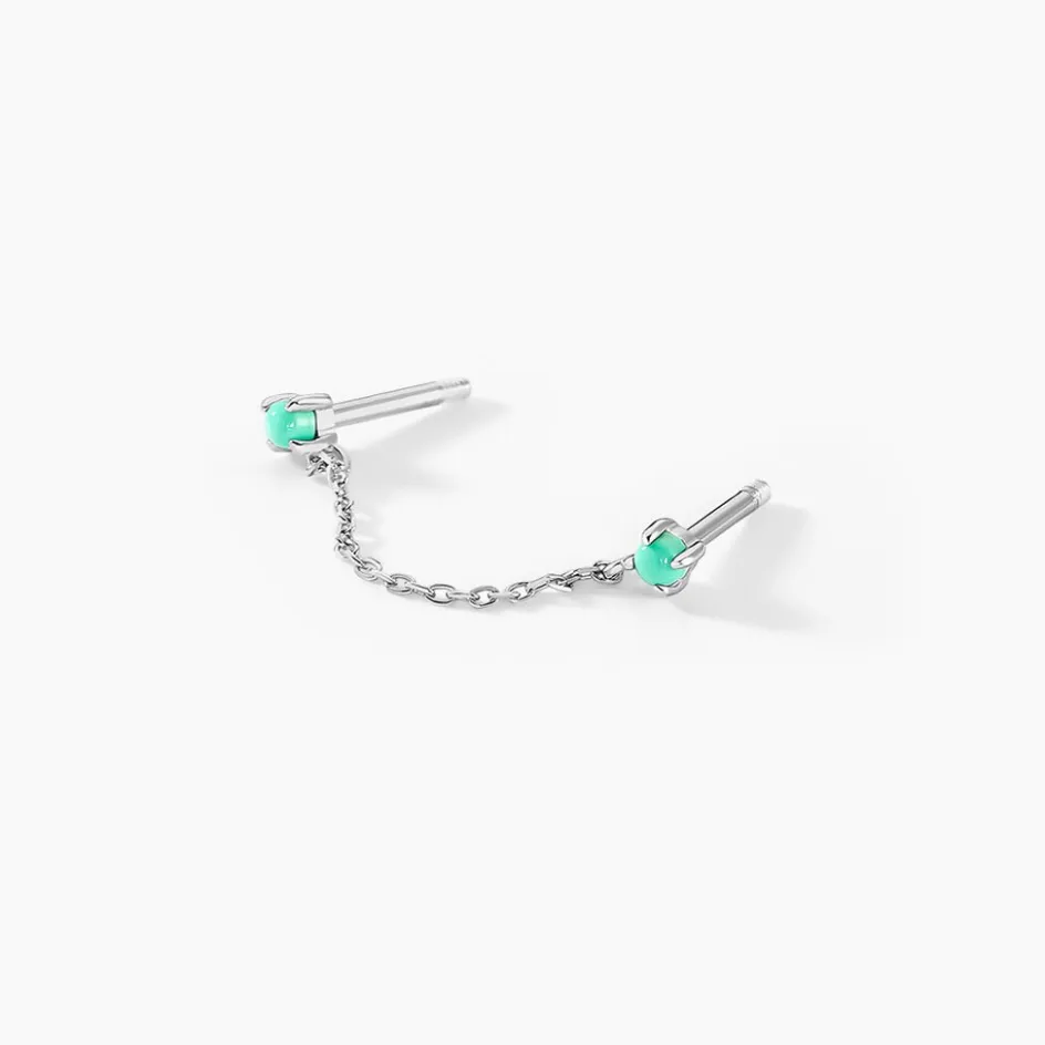 Bijou D’oreille Unitaire Argent Blanc 925/1000 Puces Turquoises Bleues Maille Forçat