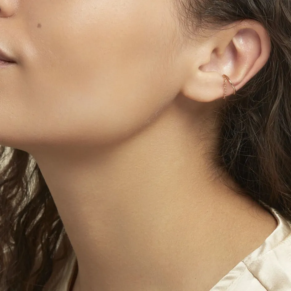 Bijou D’oreille Unitaire Plaque Or Anneau Et Chaine Forçat