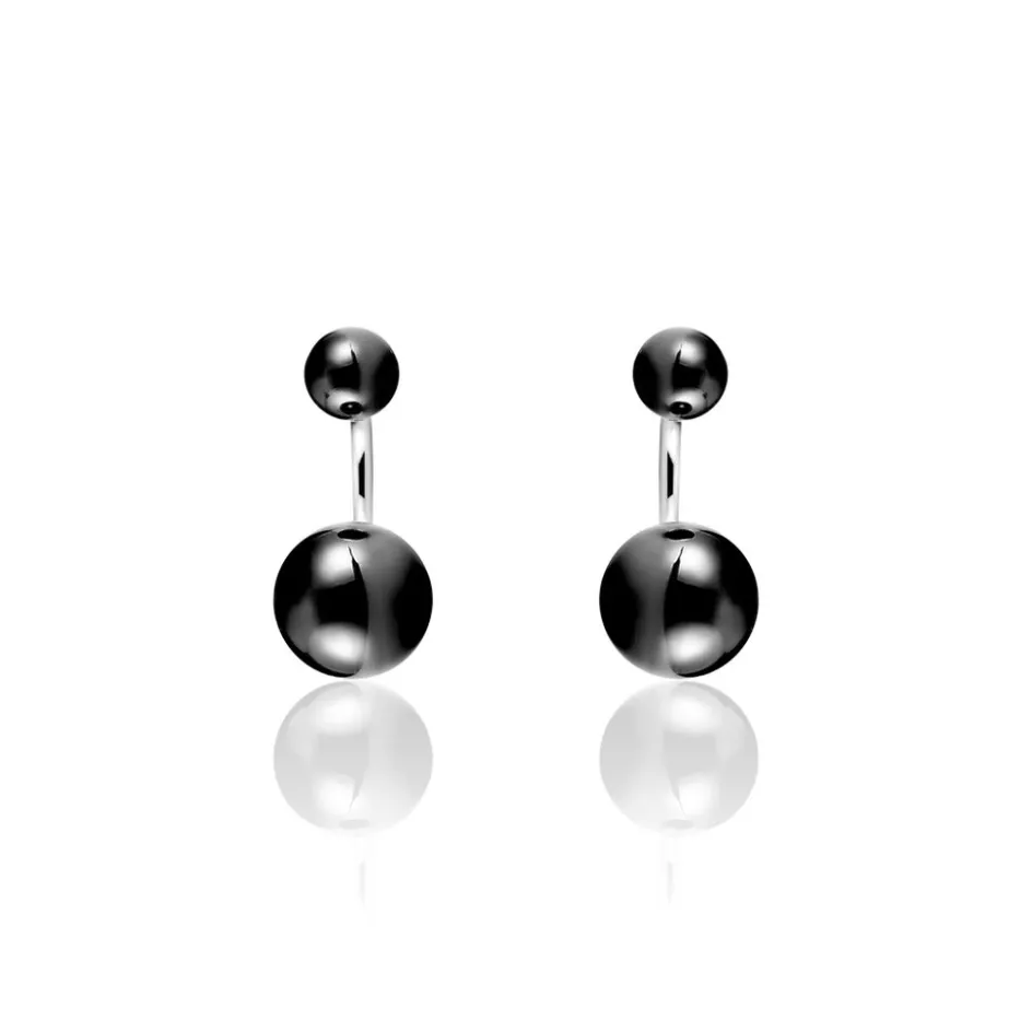 Bijoux D’oreilles Argent Blanc 925/1000 Boules Ceramiques Noires