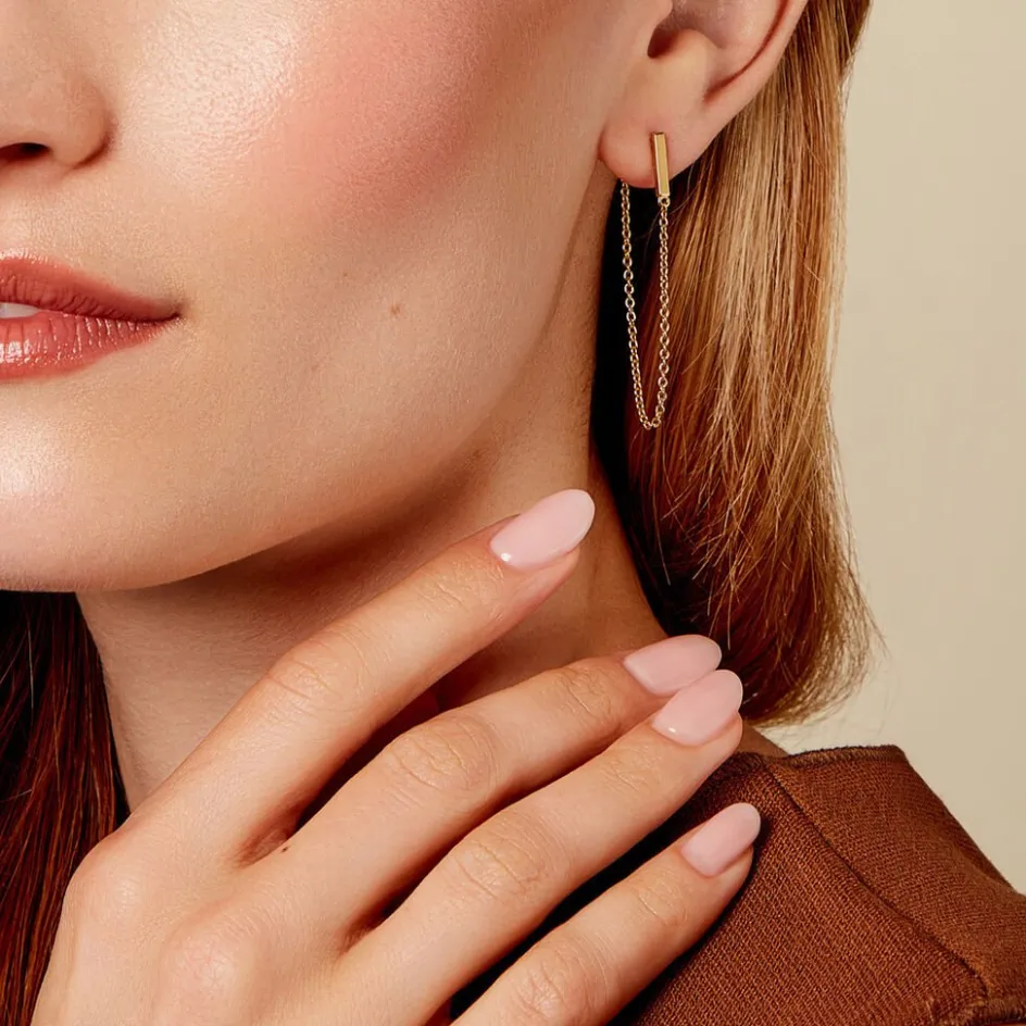 Bijoux D’oreilles Plaqué Or Jaune Barrettes Et Chaînes Forçat