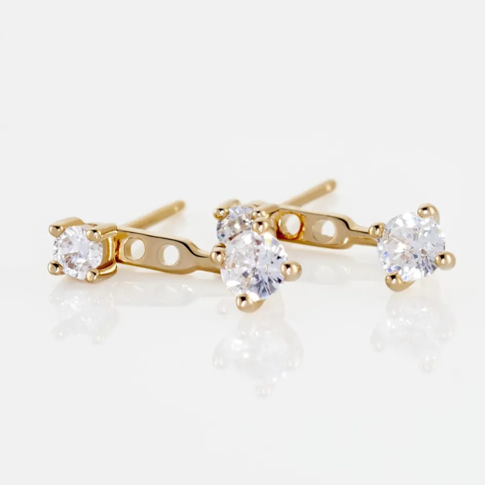 Bijoux D’oreilles Plaque Or Jaune Sertis Griffes Oxydes De Zirconium