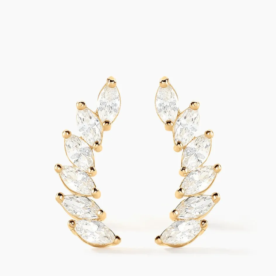 Bijoux D’oreilles Grimpantes Or Jaune 375/1000 Multi Navettes Et Oxydes De Zirconium