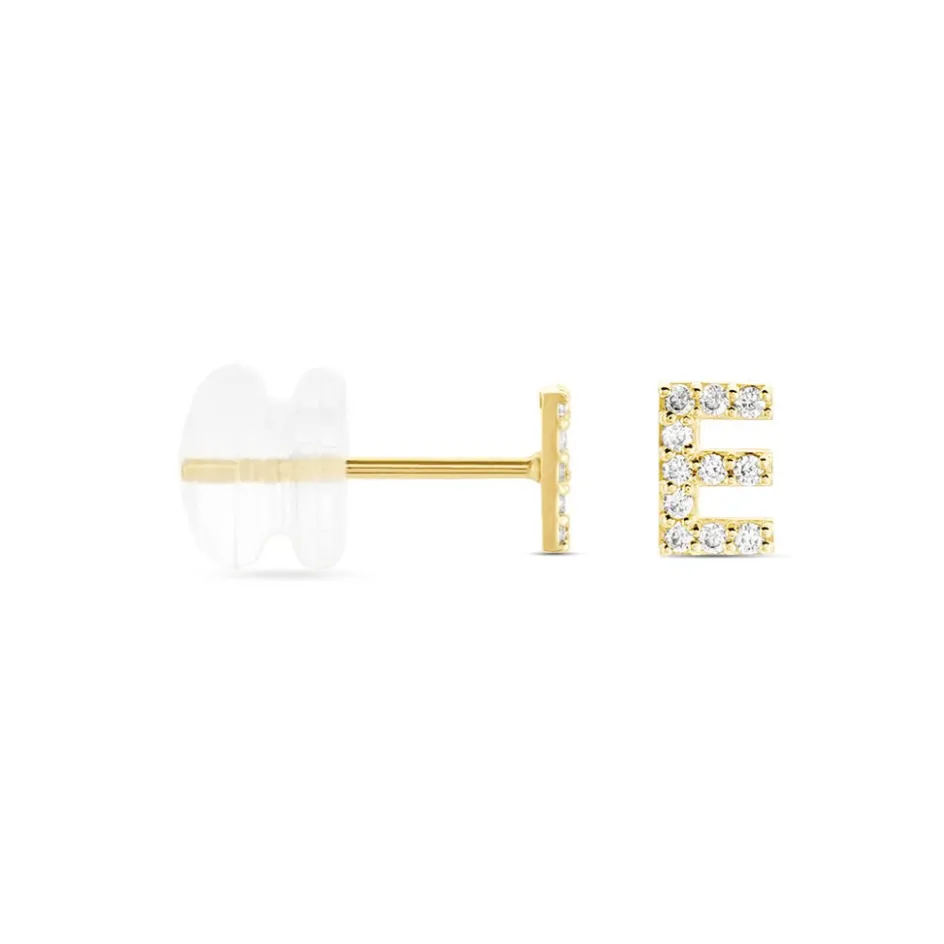 Boucle D’oreille Puce Unitaire Or Jaune 375/1000 Lettre E Oxydes De Zirconium