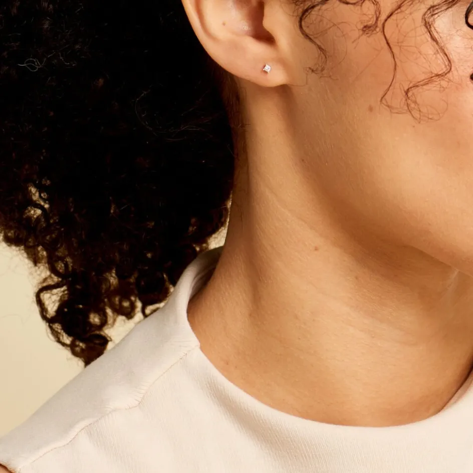 Boucle D’oreille Or Blanc 375/1000 Diamant Taille Princesse 0.05cts Serti Griffes