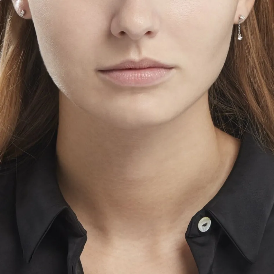 Boucles D’oreilles Dépareillées Argent Blanc 925/1000 Solitaire Et Barrettes Oxydes De Zirconium Sertis Griffes