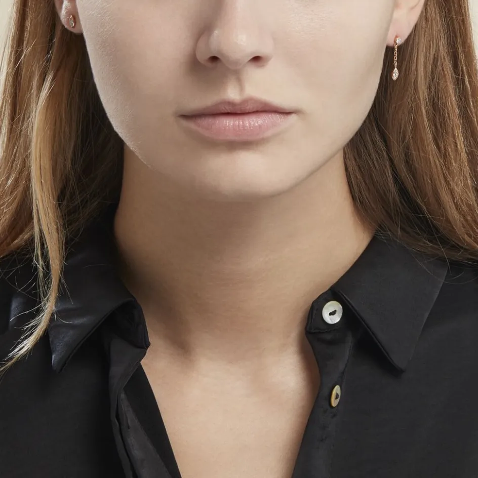 Boucles D’oreilles Dépareillées Argent Rose 925/1000 Amande Et Puce Ronde Oxydes De Zirconium Sertis Clos