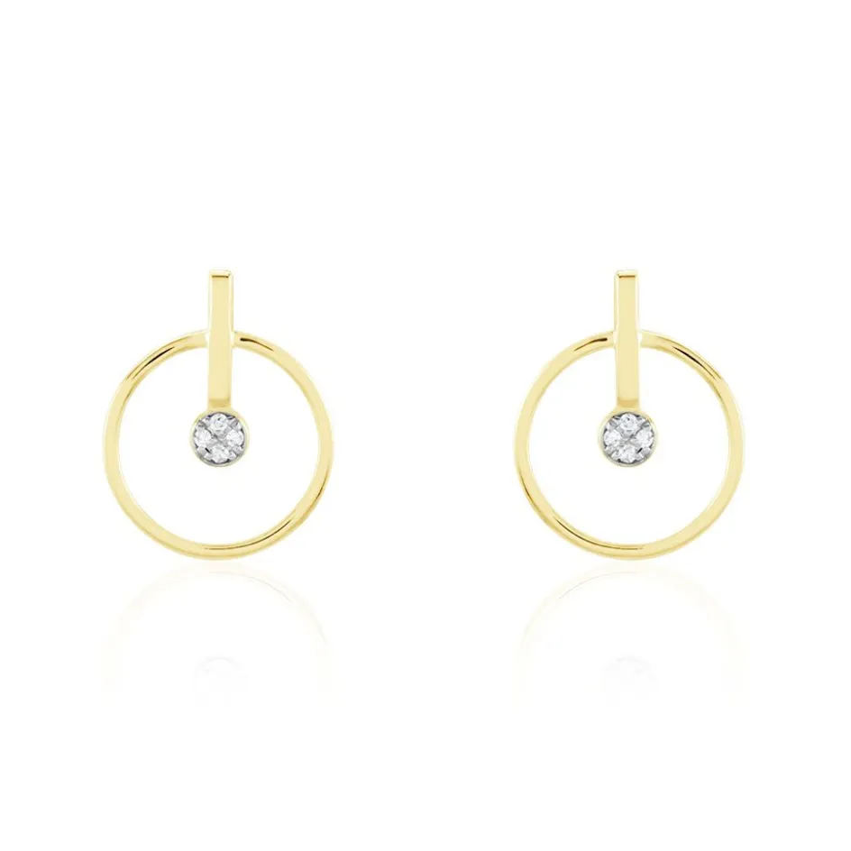 Boucles D’oreilles Or Jaune 375/1000 Motifs Cercles Ronds Diamants
