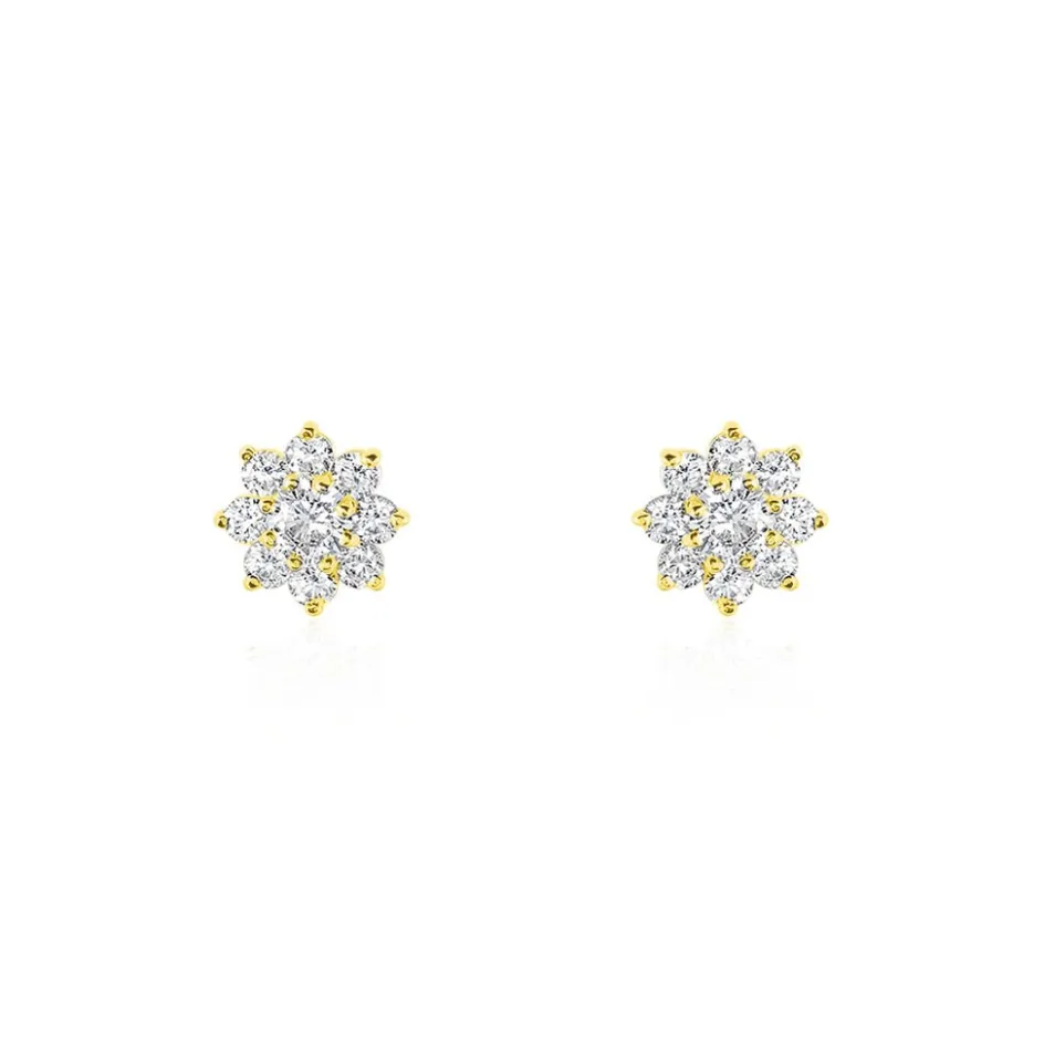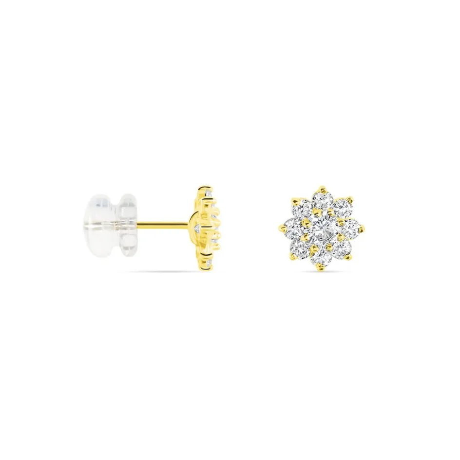 Boucles D’oreilles Or Jaune 375/1000 Fleur Oxydes De Zirconium