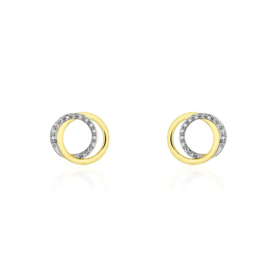 Boucles D’oreilles Or Jaune 375/1000 Forme Cercles Entrelaces Diamants
