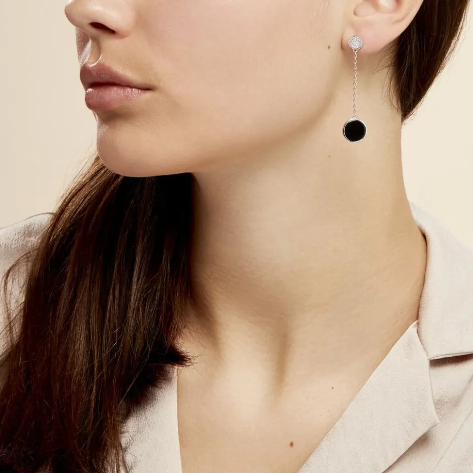 Boucles D’oreilles Argent 925/1000 Double Ceramique Et Oxyde