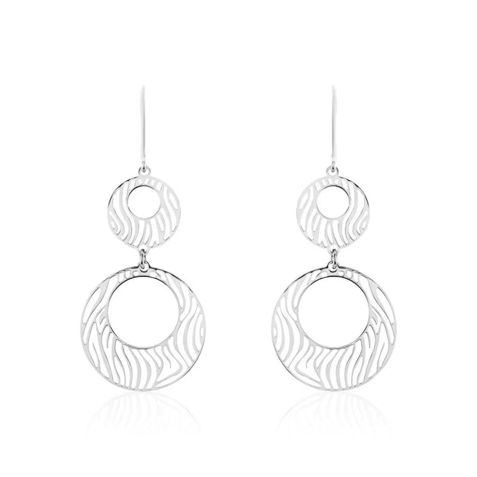 Boucles D’oreilles Pendantes Argent Blanc 925/1000 Cercles Motifs Zebres