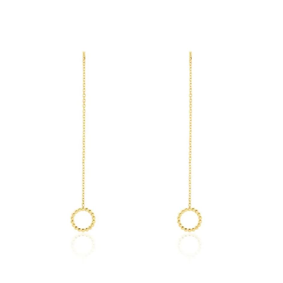 Boucles D’oreilles Pendantes Or Jaune 375/1000 Cercles Ajoures Effet Perle Chaine Maille Jaseron