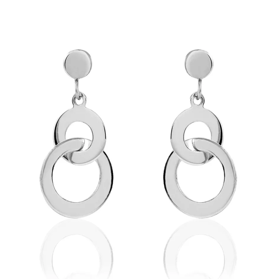Boucles D’oreilles Pendantes Argent Blanc 925/1000 Double Cercles Ajoures Entrelaces
