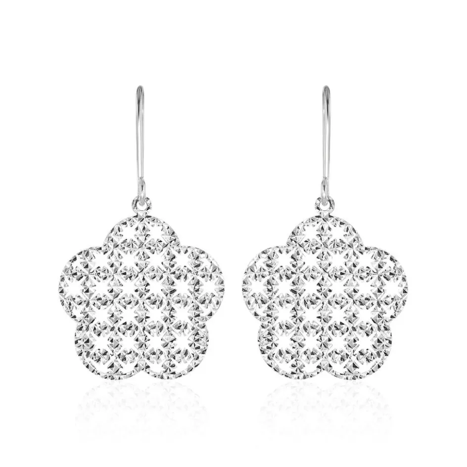 Boucles D’oreilles Or Blanc 375/1000 Pendantes Fleur Grand Modèle Constellation
