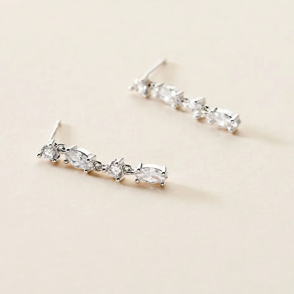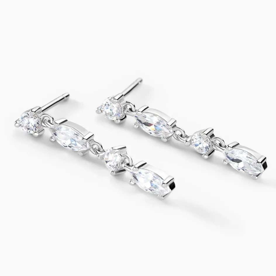 Boucles D’oreilles Pendantes Argent Blanc 925/1000 Multipierres Navettes Oxydes De Zirconium 2.6cm
