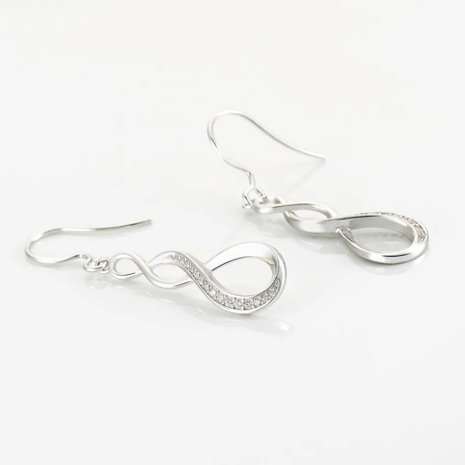 Boucles D’oreilles Argent Blanc 925/1000 Formes Torsadees Oxydes De Zirconium