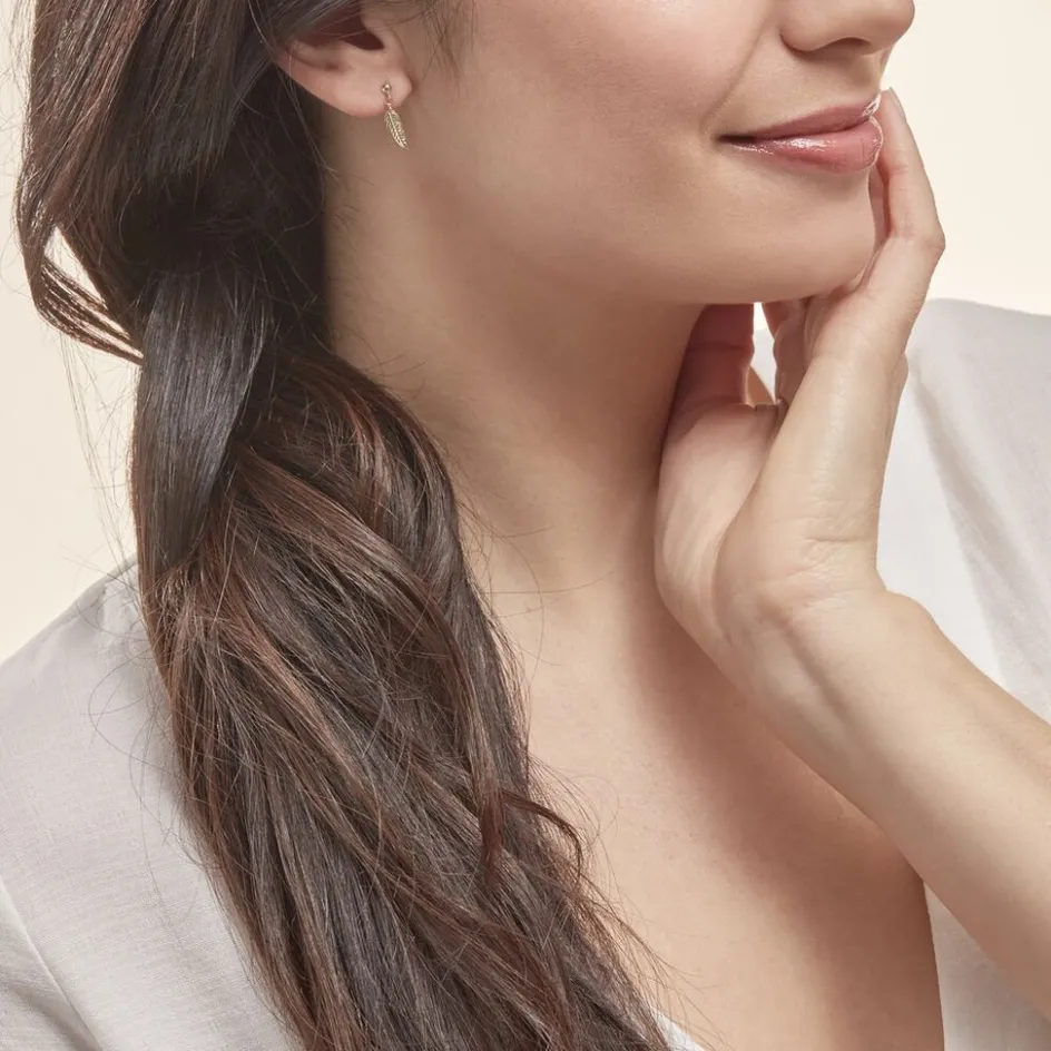Boucles D’oreilles Or Jaune 375/1000 Pendantes Motifs Plumes