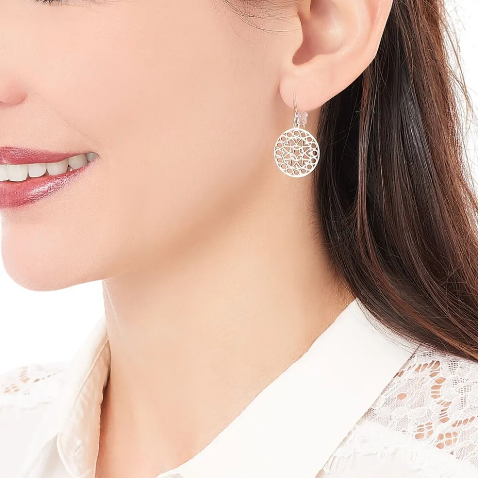 Boucles D’oreilles Pendantes Plaqué Or Jaune Rosaces Ethniques