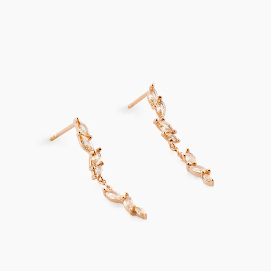Boucles D’oreilles Pendantes Argent Rose 925/1000 Multipierres Oxydes De Zirconium Champagne Tailles Navettes