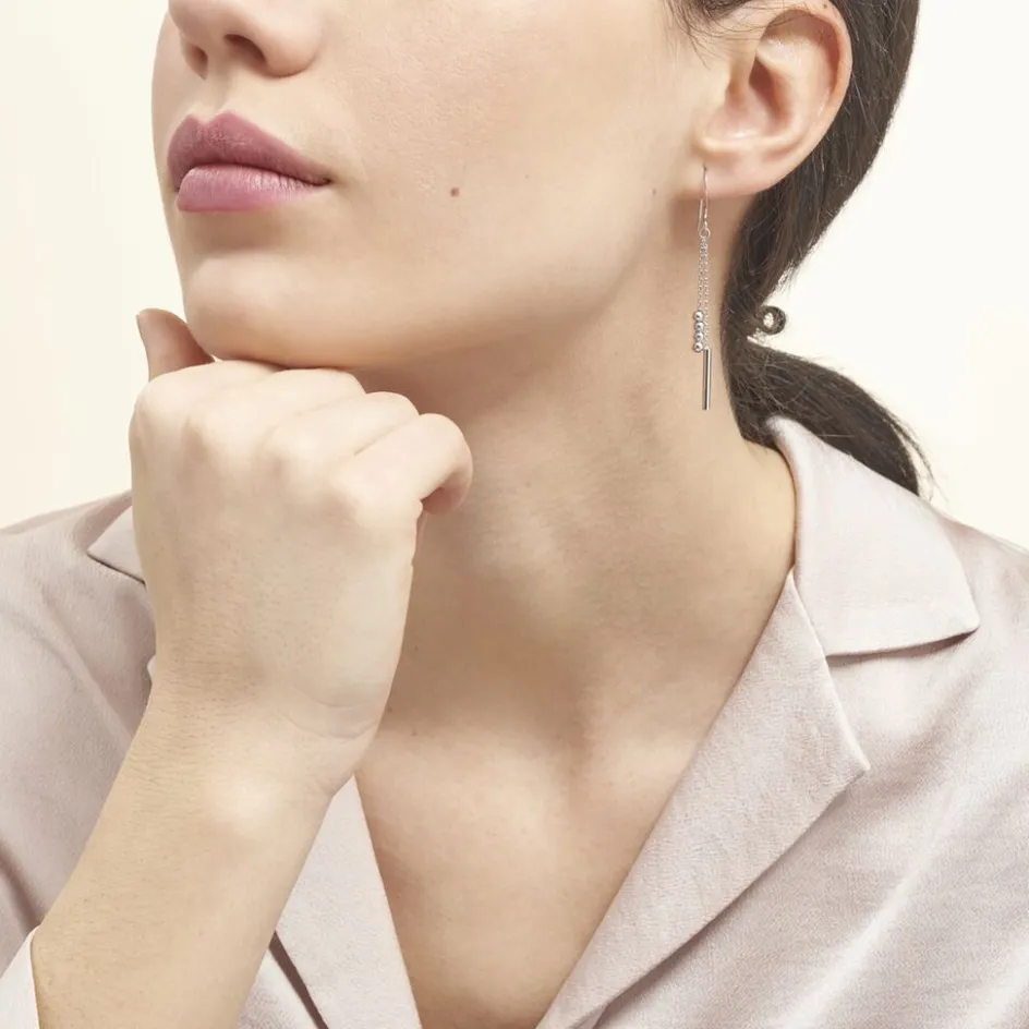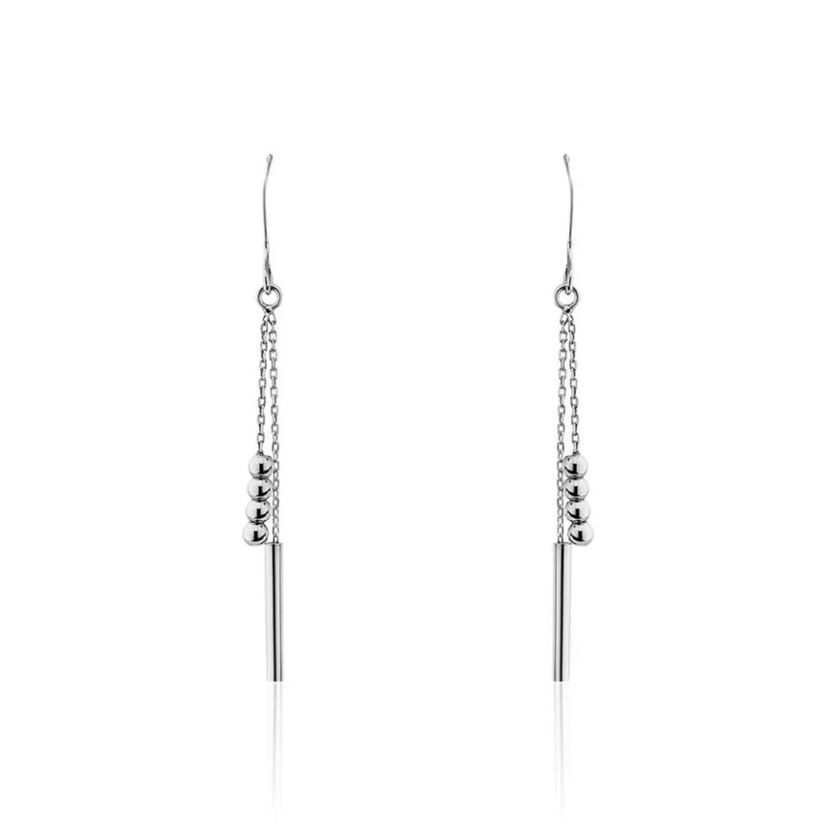 Boucles D’oreilles Pendantes Argent Blanc 925/1000 Tubes Et Boules Mailles Forcat