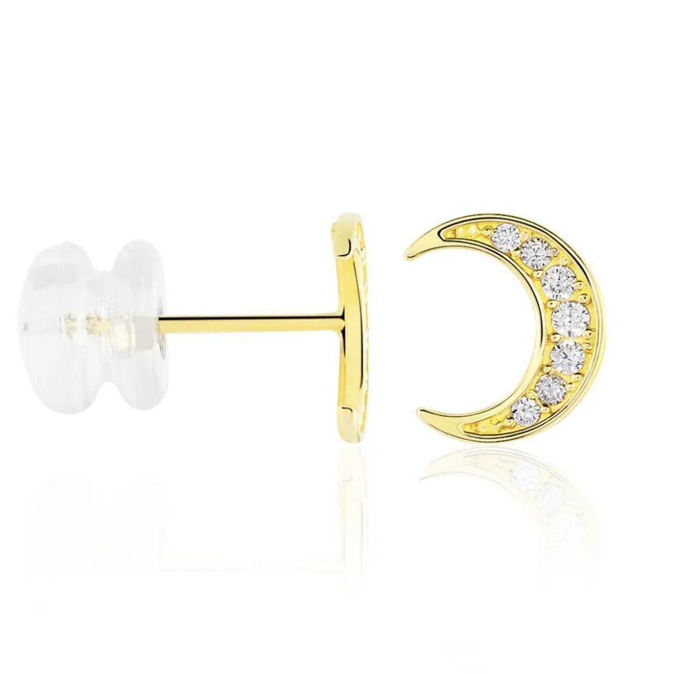 Boucles D’oreilles Or Jaune 375/1000 Lune Oxyde De Zirconium