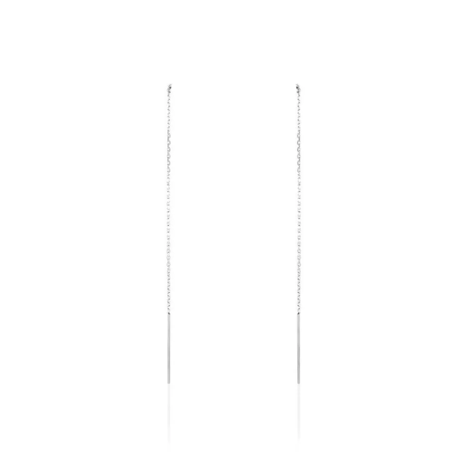 Boucles D’oreilles Pendantes Argent Blanc 925/1000 Double Pendantes Maille Forcat 6.5cm