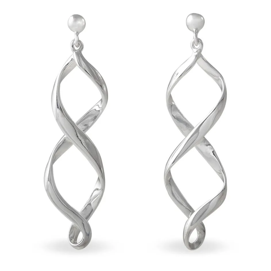 Boucles D’oreilles Pendantes Argent Blanc 925/1000 Torsadees
