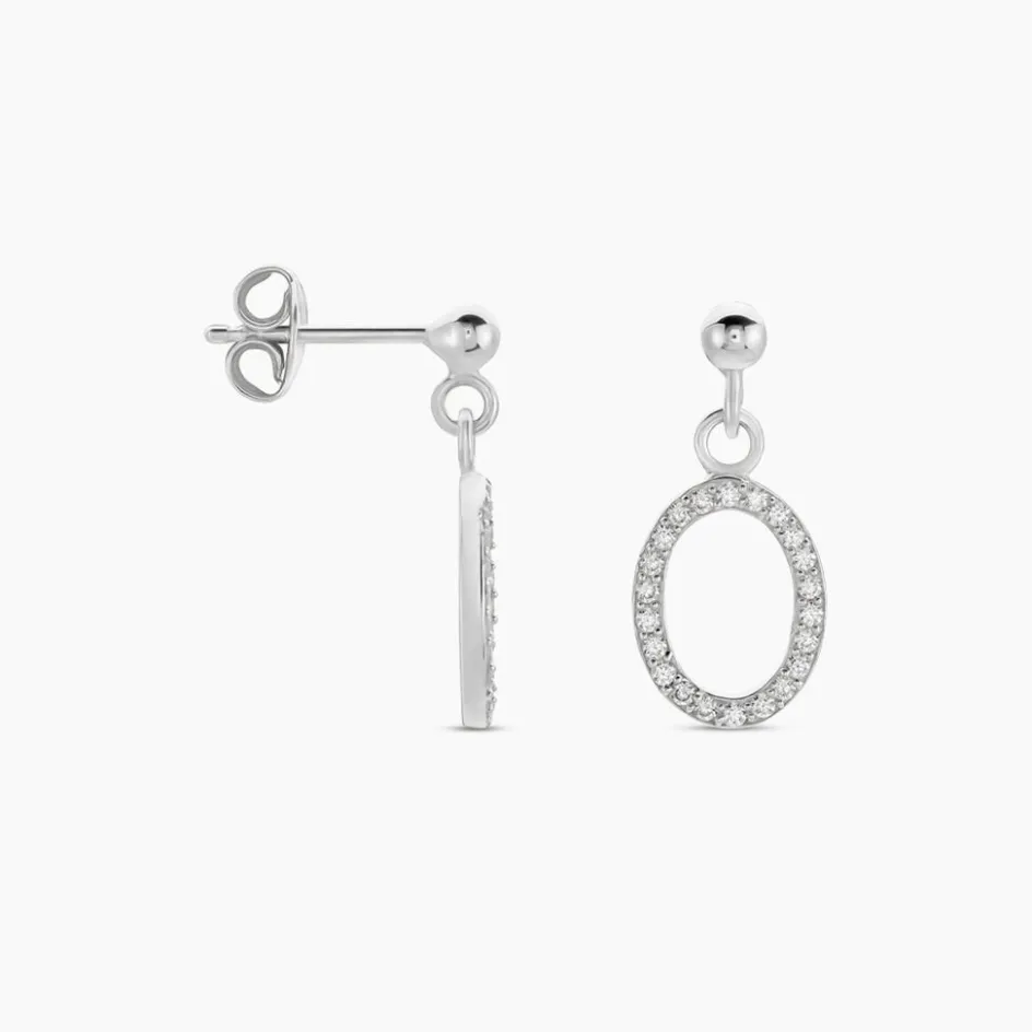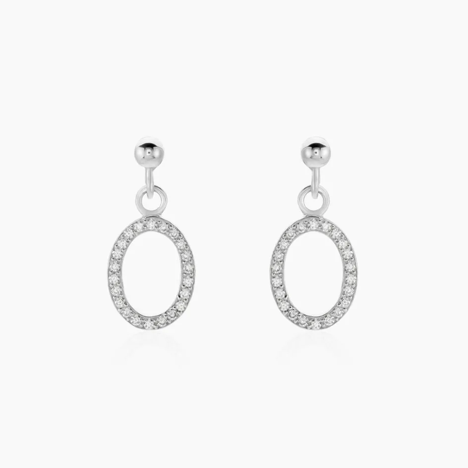 Boucles D’oreilles Pendantes Argent Blanc 925/1000 Ovales Oxydes De Zirconium