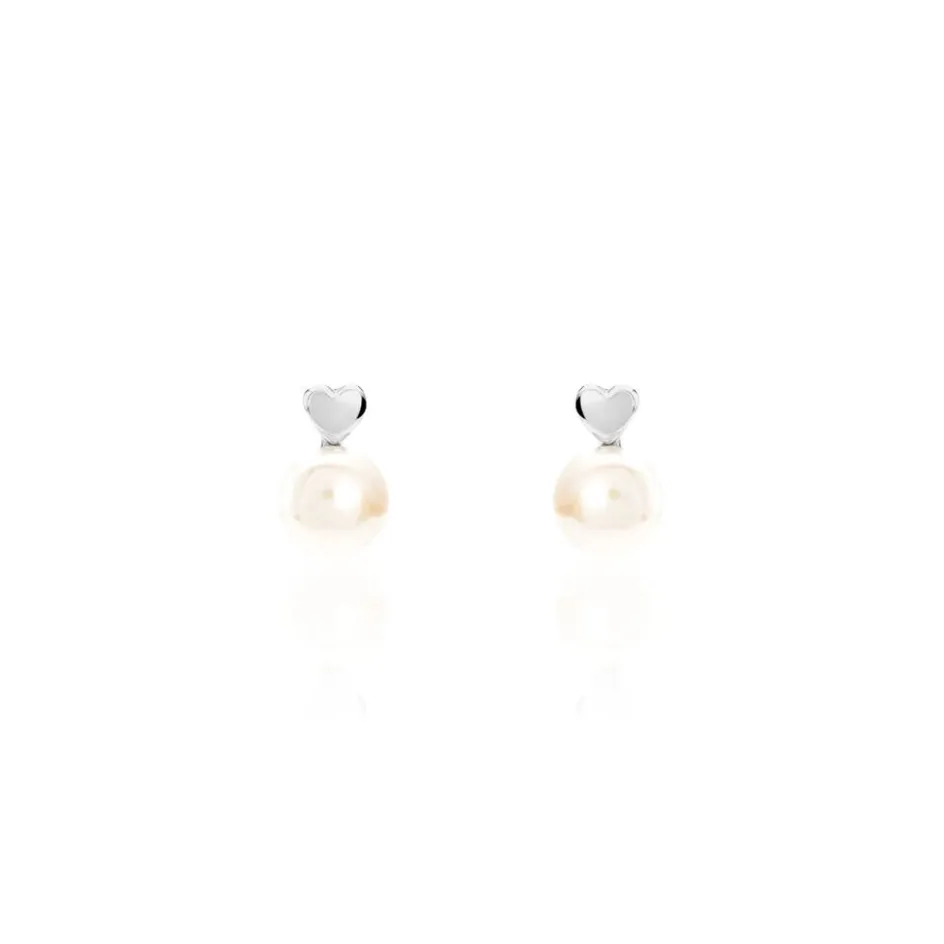 Boucles D’oreilles Argent Blanc 925/1000 Coeurs 8-8.5m