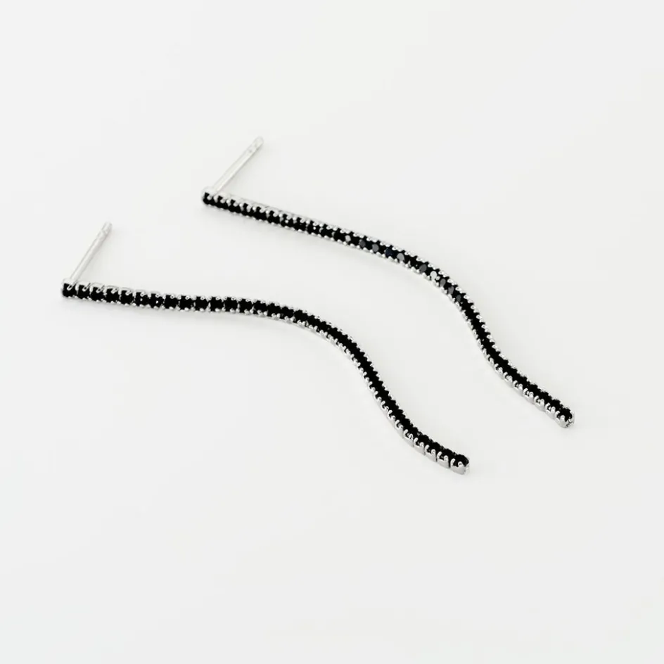 Boucles D’oreilles Pendantes Argent 925/1000 Rivière Oxydes De Zirconium Noirs Serti 4 Griffes Maille Tennis 6cm
