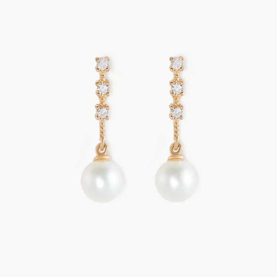 Boucles D’oreilles Or Jaune 375/1000 Barrettes Oxydes De Zirconium Et Perles De Culture 5mm