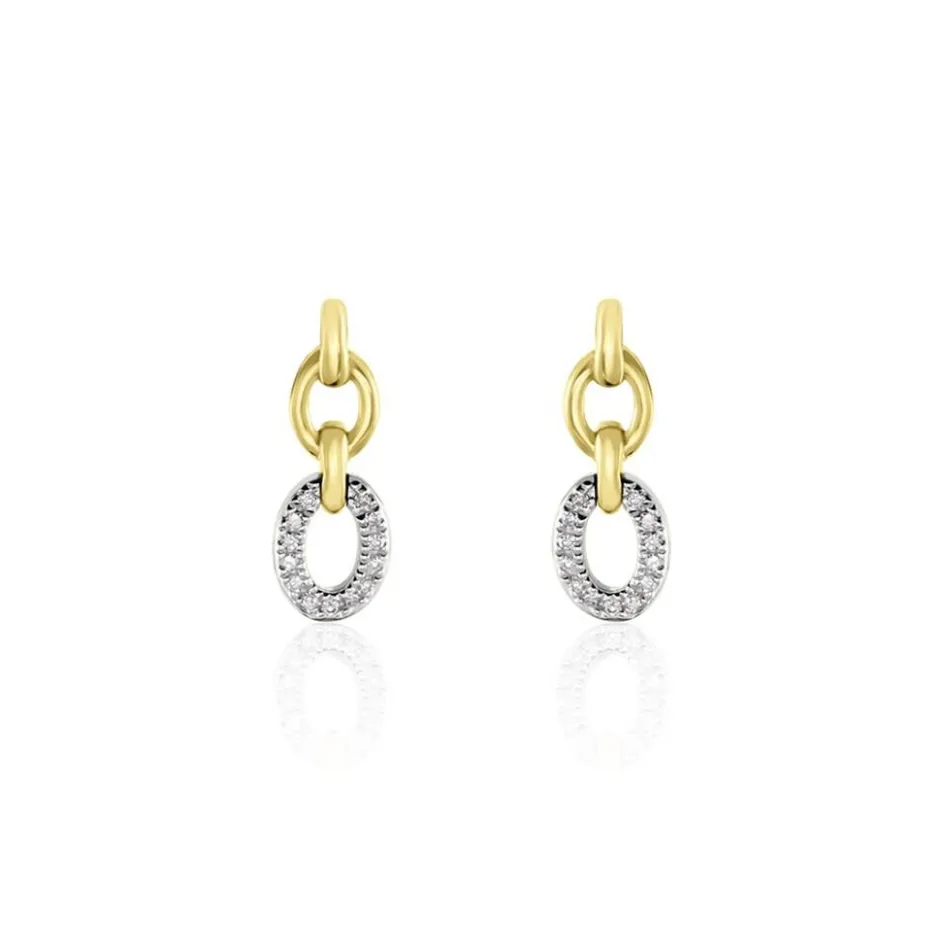 Boucles D’oreilles Pendantes Or Jaune 375/1000 Forme Double Cercle Pavage Diamants