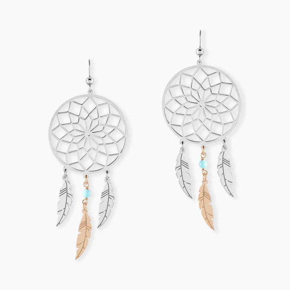 Boucles D’oreilles Pendantes Argent Blanc 925/1000 Attrapes Reves Pierres Bleues