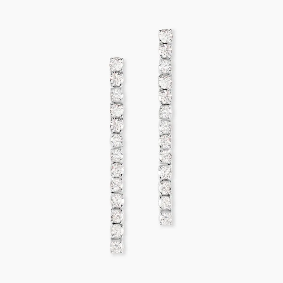 Boucles D’oreilles Pendantes Or Blanc 750/1000 Riviere De Diamants Synthetiques Sertis Griffes