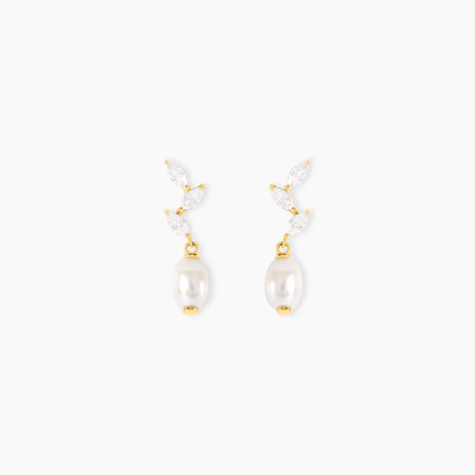Boucles D’Oreilles Pendantes Or Jaune 375/1000 Perle De Culture Baroque 5Mm Accompagne Navette Oxyde De Zirconium