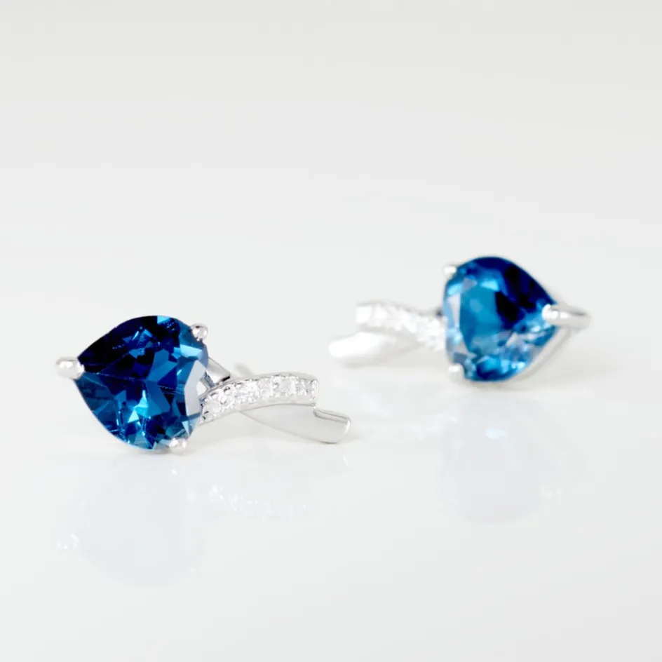 Boucles D’oreilles Or Blanc 375/1000 Topazes London Blue Formes C艙urs Et Oxydes De Zirconium