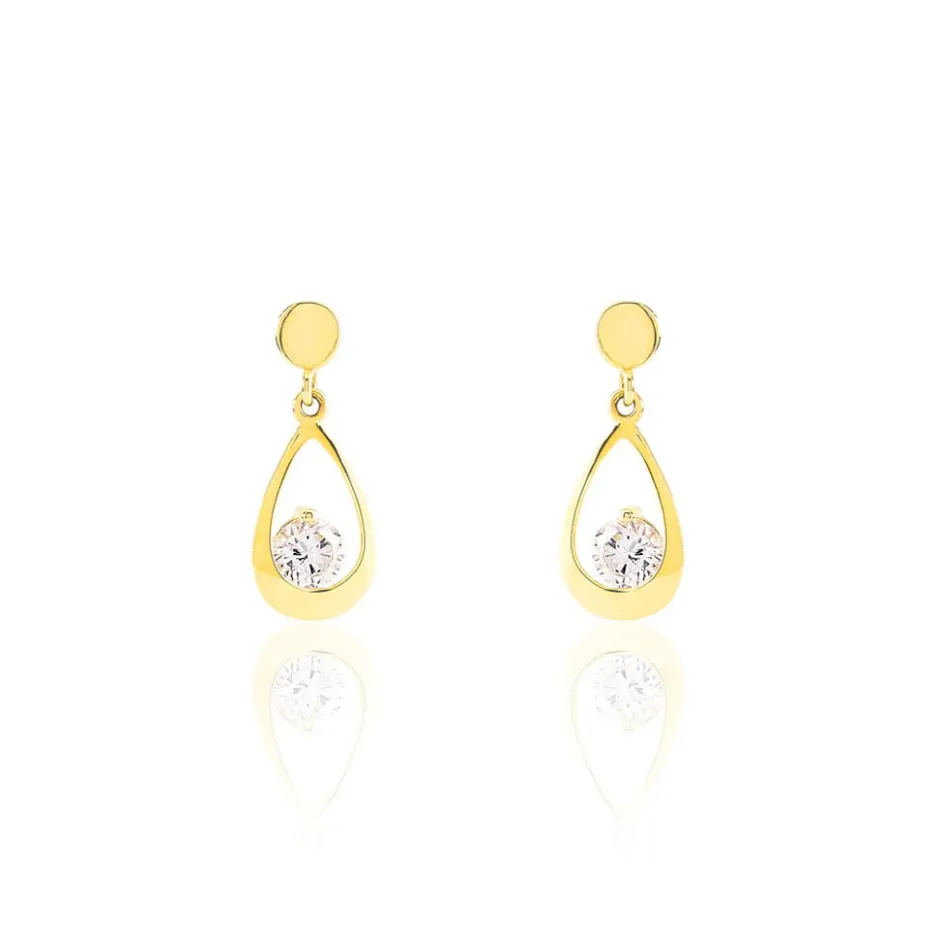Boucles D’oreilles Or Jaune 375/1000 Forme Goutte Ajourée Oxyde De Zirconium Central