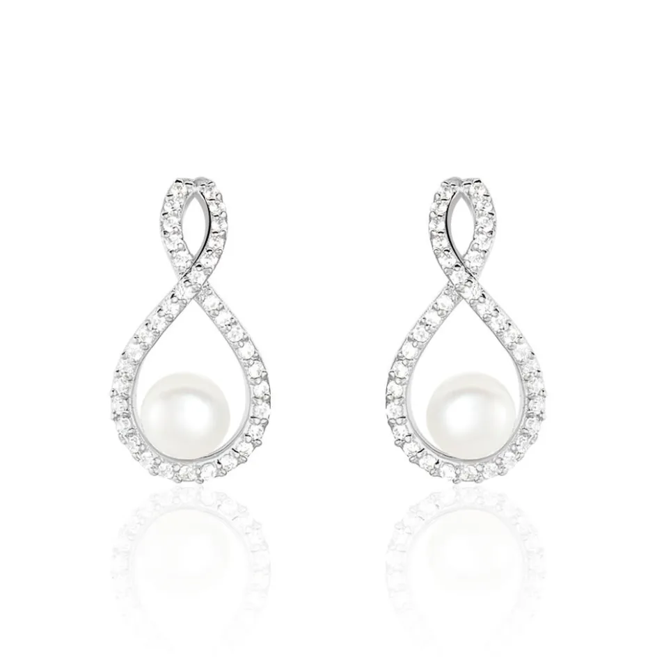 Boucles D’oreilles Argent Blanc 925/1000 Perles De Cultures Nacre 5/5.5mm Vrillees Oxydes De Zirconium