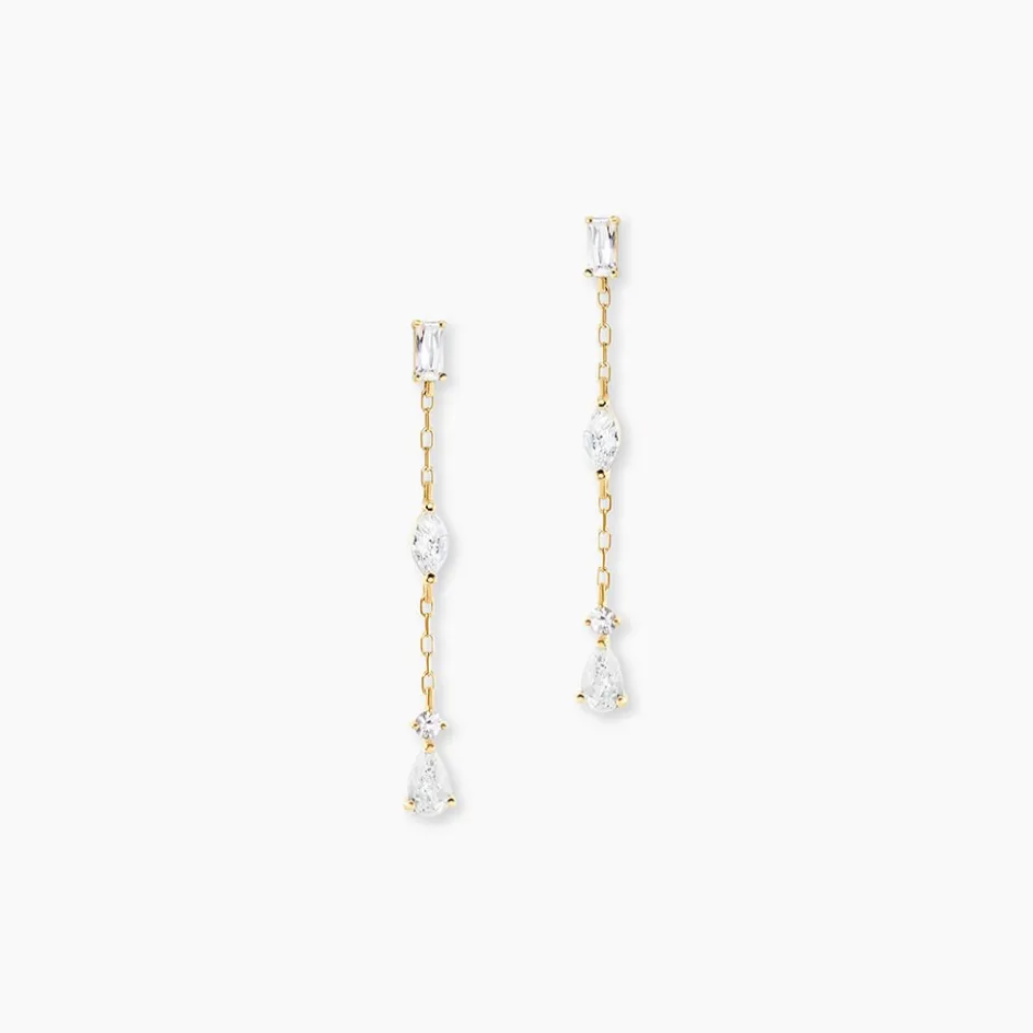 Boucles D’Oreilles Pendantes Or Jaune 375/1000 Multipierre Oxyde De Zirconium Serti Griffes