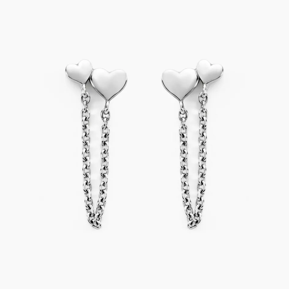 Boucles D’oreilles Pendantes Argent Blanc 925/1000 Double C艙ur Chaîne Forçat