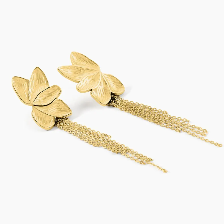 Boucles D’Oreilles Pendantes Acier Inoxydable Jaune Fleurs Multi Chaines