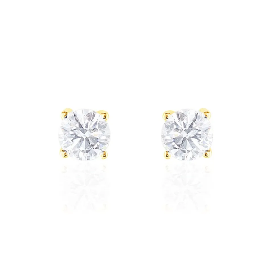 Boucles D’oreilles Or Jaune 750/1000 Puces Diamants Synthetique 1.2cts Sertis 4 Griffes Systemes Alpas
