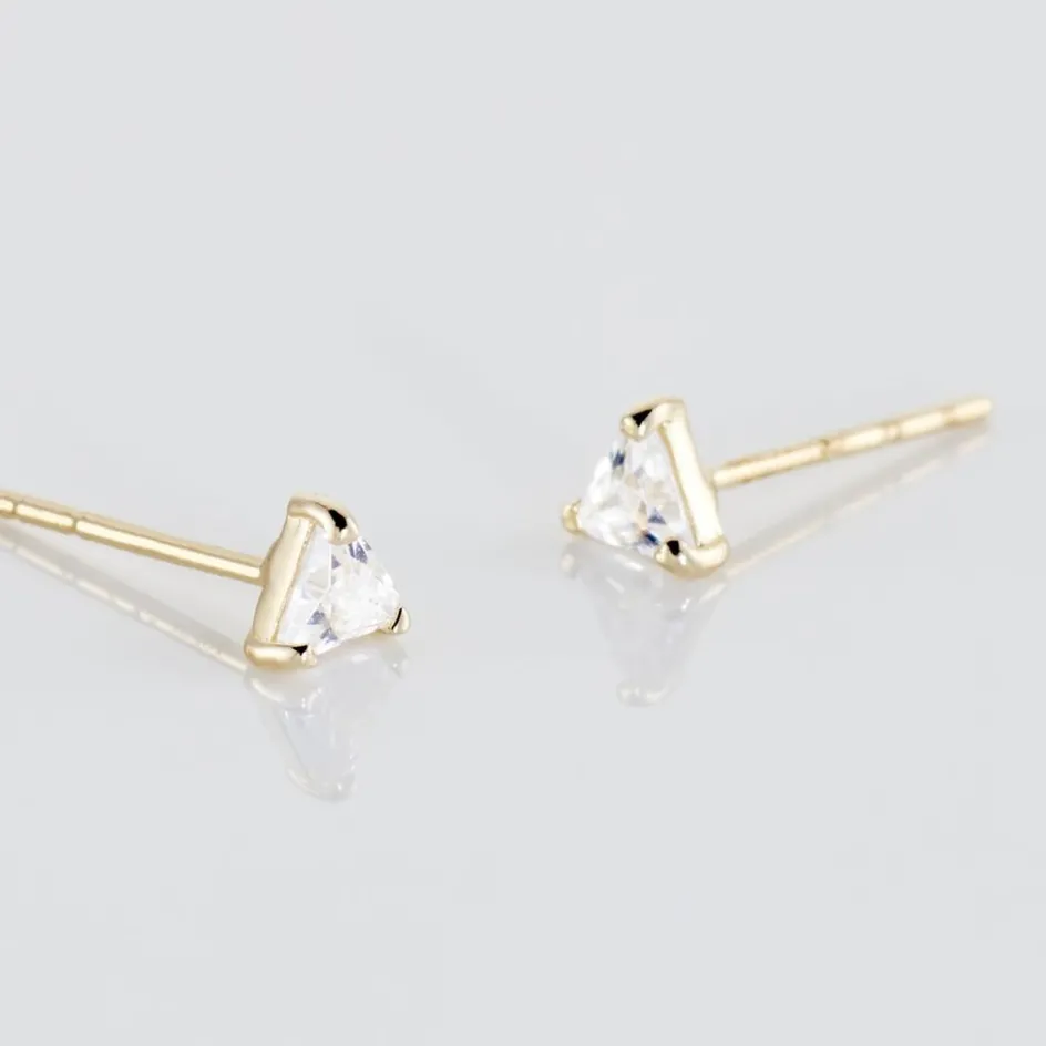 Boucles D’oreilles Puces Or Jaune 375/1000 Triangles Serti Griffes Oxydes De Zirconium