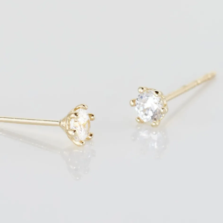 Boucles D’oreilles Puces Or Jaune 375/1000 Rondes Serti Griffes Oxydes De Zirconium 3x4mm