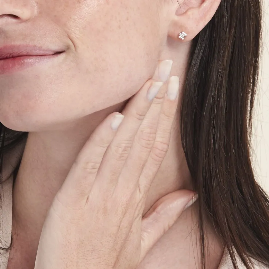 Boucles D’oreilles Puces Argent 925/1000 Petites Baguettes Désorganisées Oxydes De Zirconium