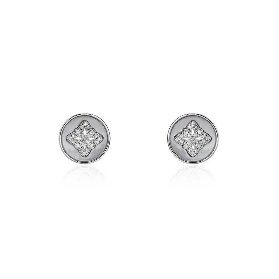 Boucles D’oreilles Argent 925/1000 Nacre Grise Etoile Oxyde