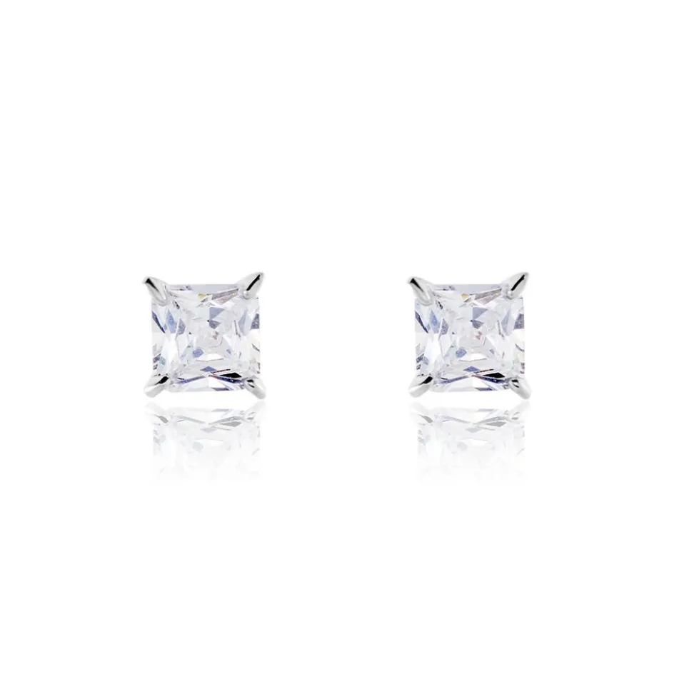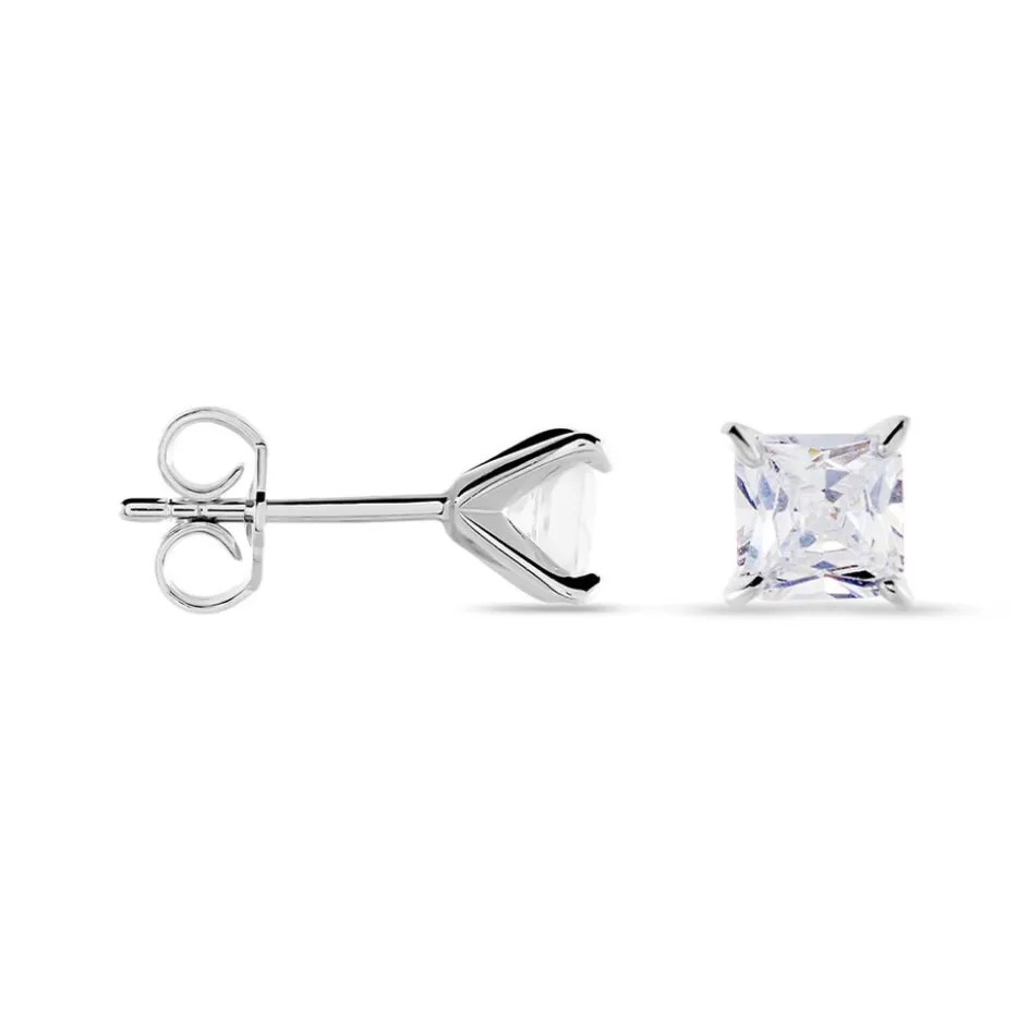 Boucles D’oreilles Puces Argent Blanc 925/1000 Oxyde De Zirconium Carré Serti 4 Griffes 5mm