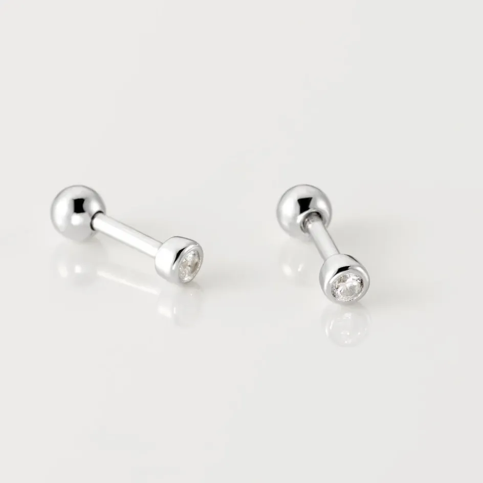 Boucles D’oreilles Puces Argent 925/1000 Mini Solitaire Sertis Clos Oxydes De Zirconium