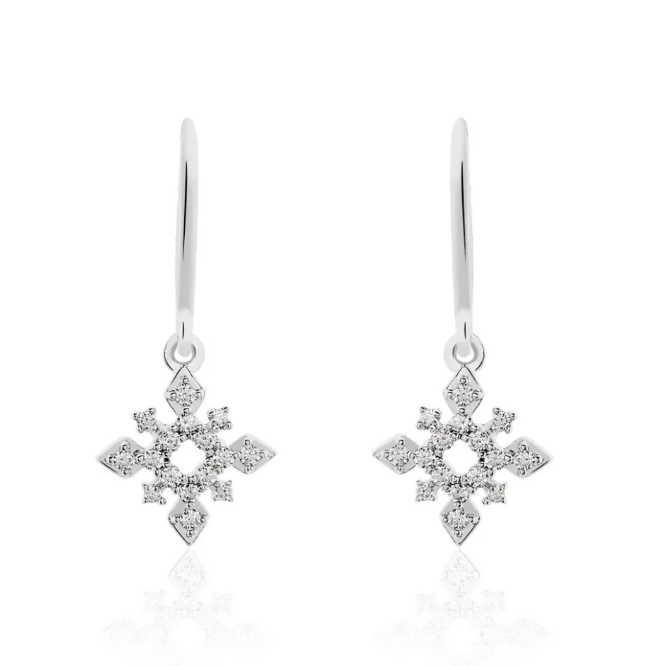 Boucles D’oreilles Or Blanc 375/1000 Motif Flocon Diamants