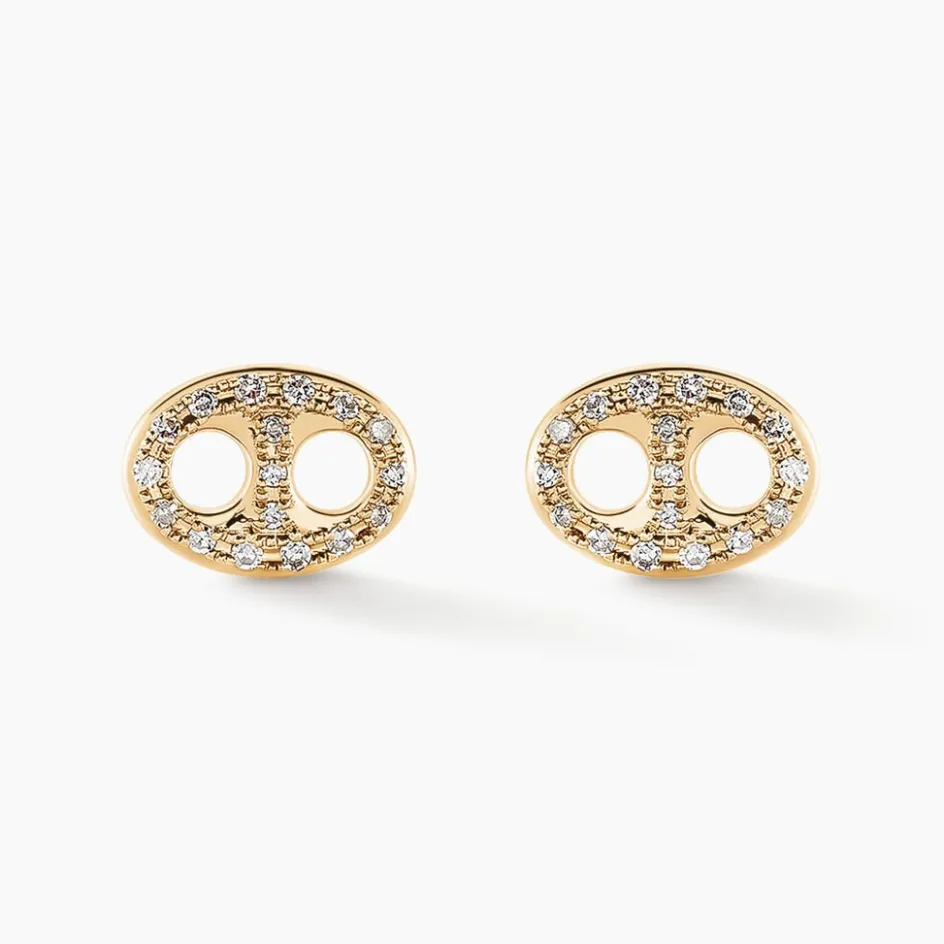 Boucles D’oreilles Puces Or Jaune 375/1000 Grain De Cafe Pavage Diamants